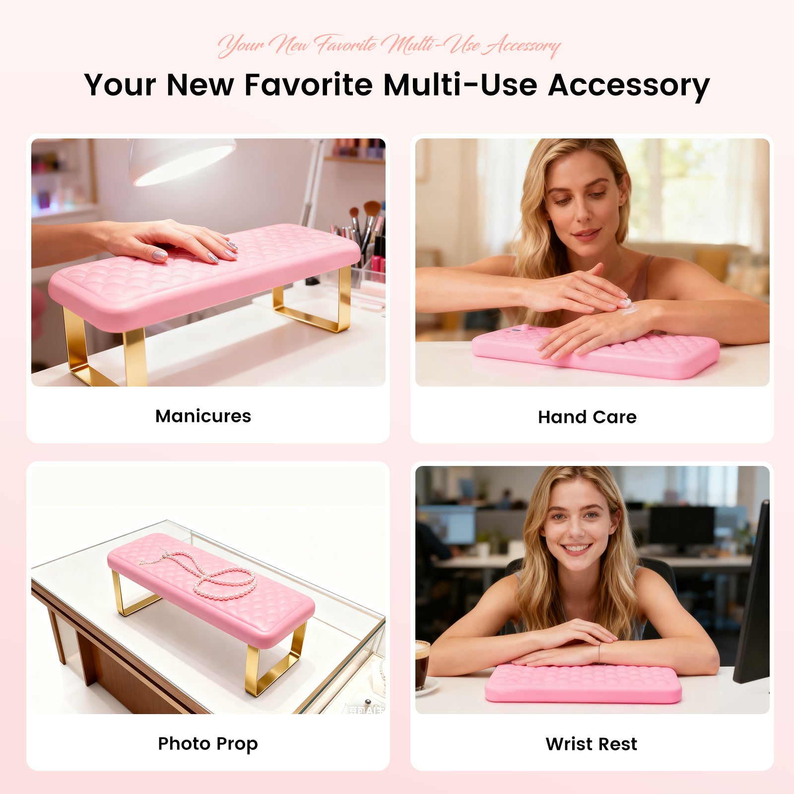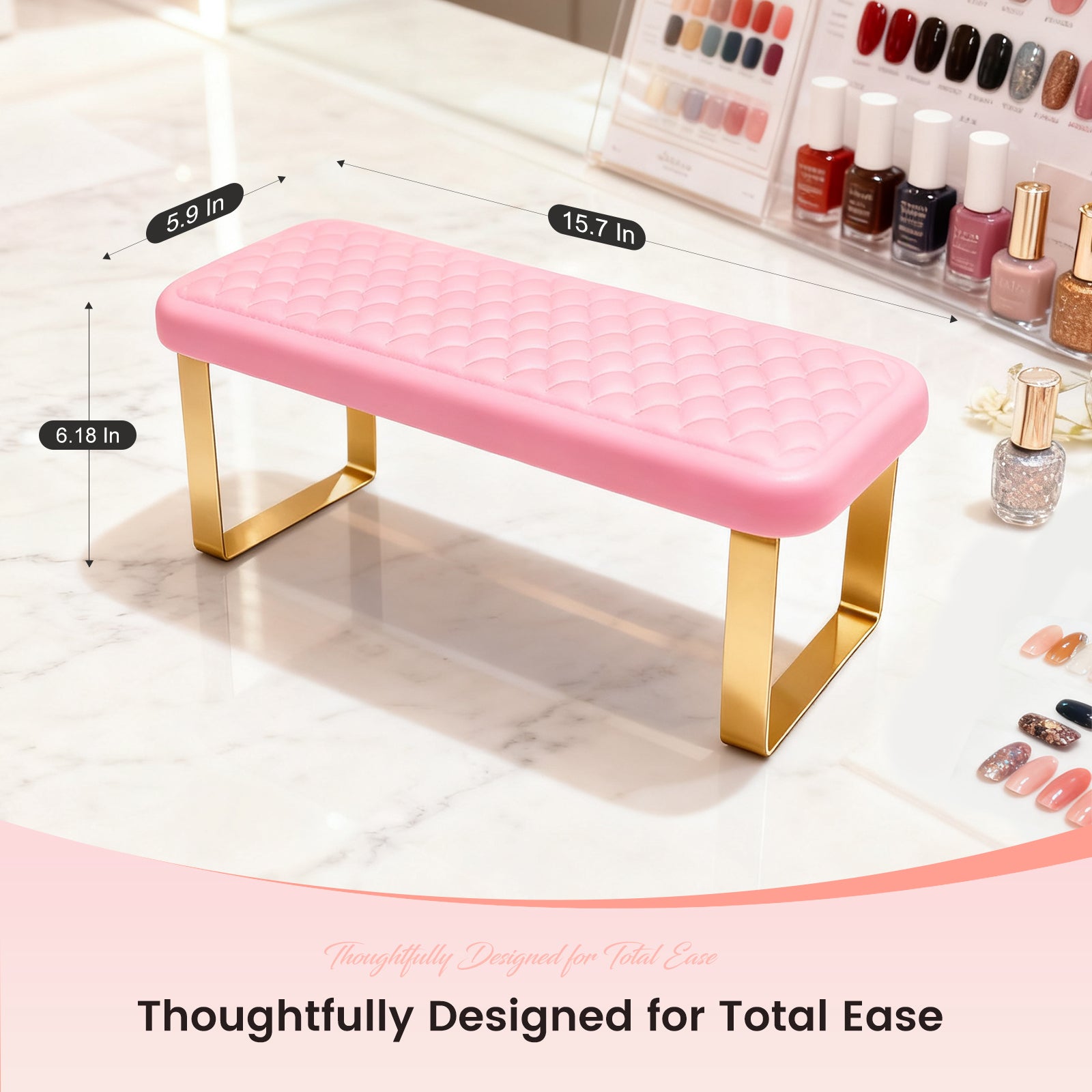 Medium-sized UH5 hand rest with sturdy metal legs. Balanced size suitable for most nail technicians and clients.